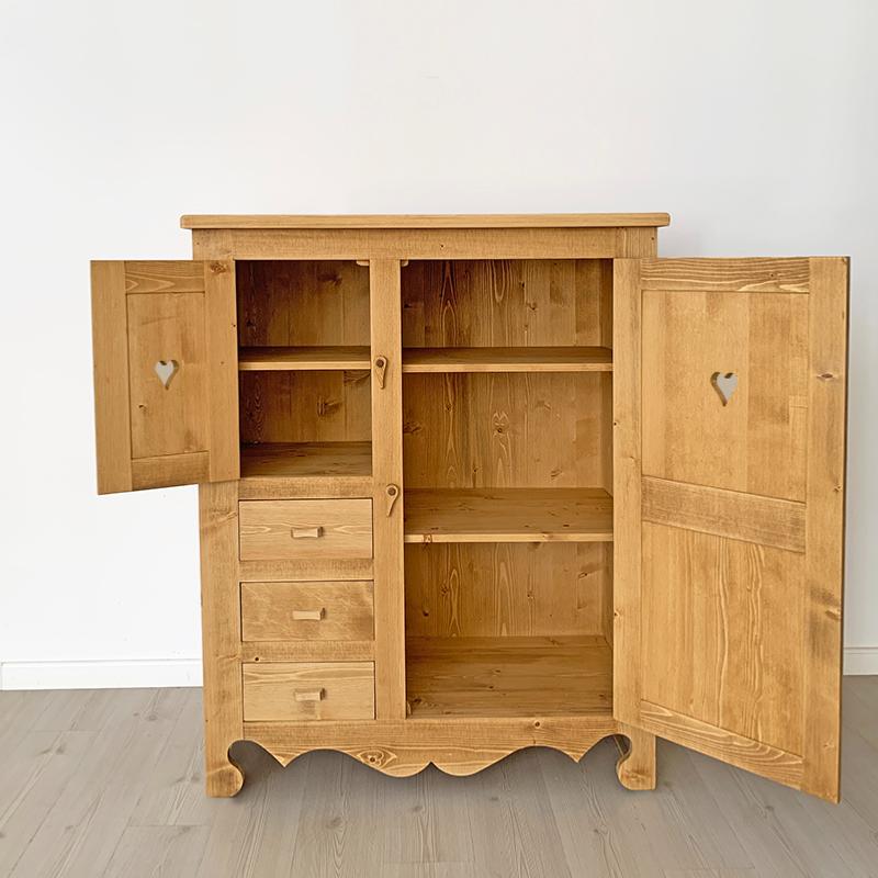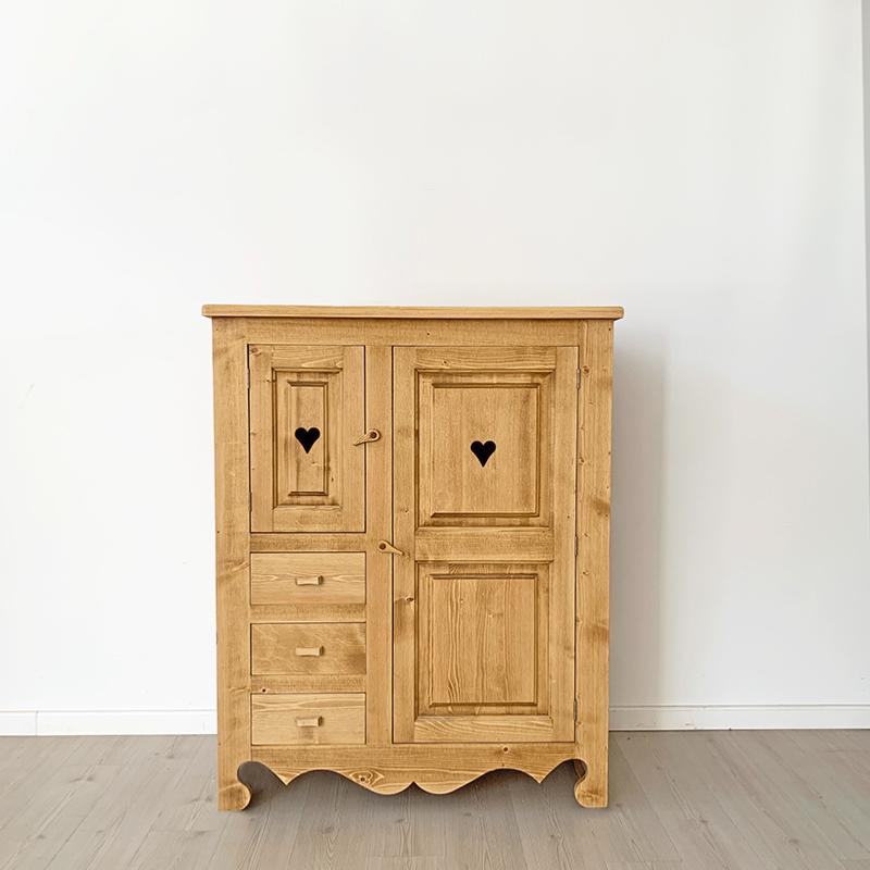 Armoirette en pin massif 2 portes 3 tiroirs