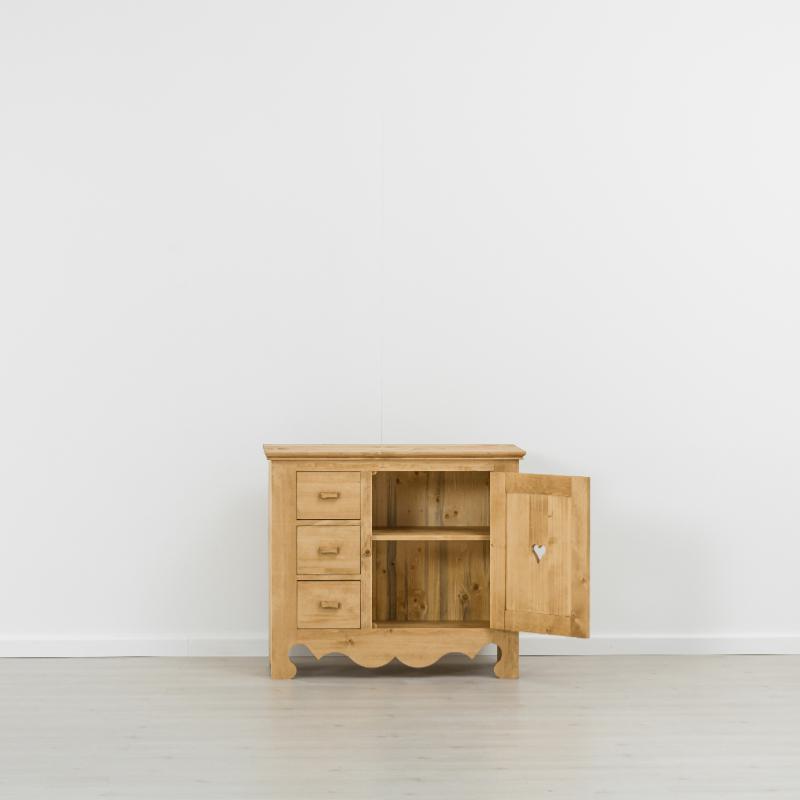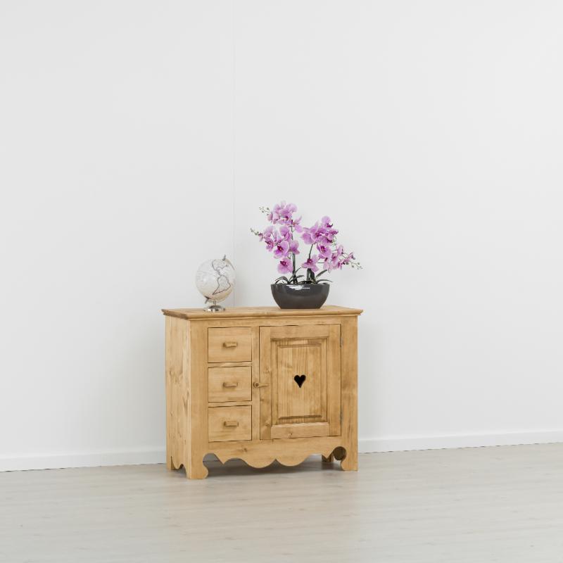 Bahut bas en pin massif 1 porte 3 tiroirs